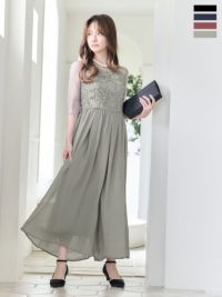 リーフ柄ラッセルレース七分袖ドレープギャザーシフォンパンツパーティードレスのカラーバリエーション画像