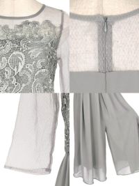 リーフ柄ラッセルレース七分袖ドレープギャザーシフォンパンツパーティードレスのスペック表