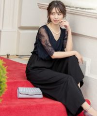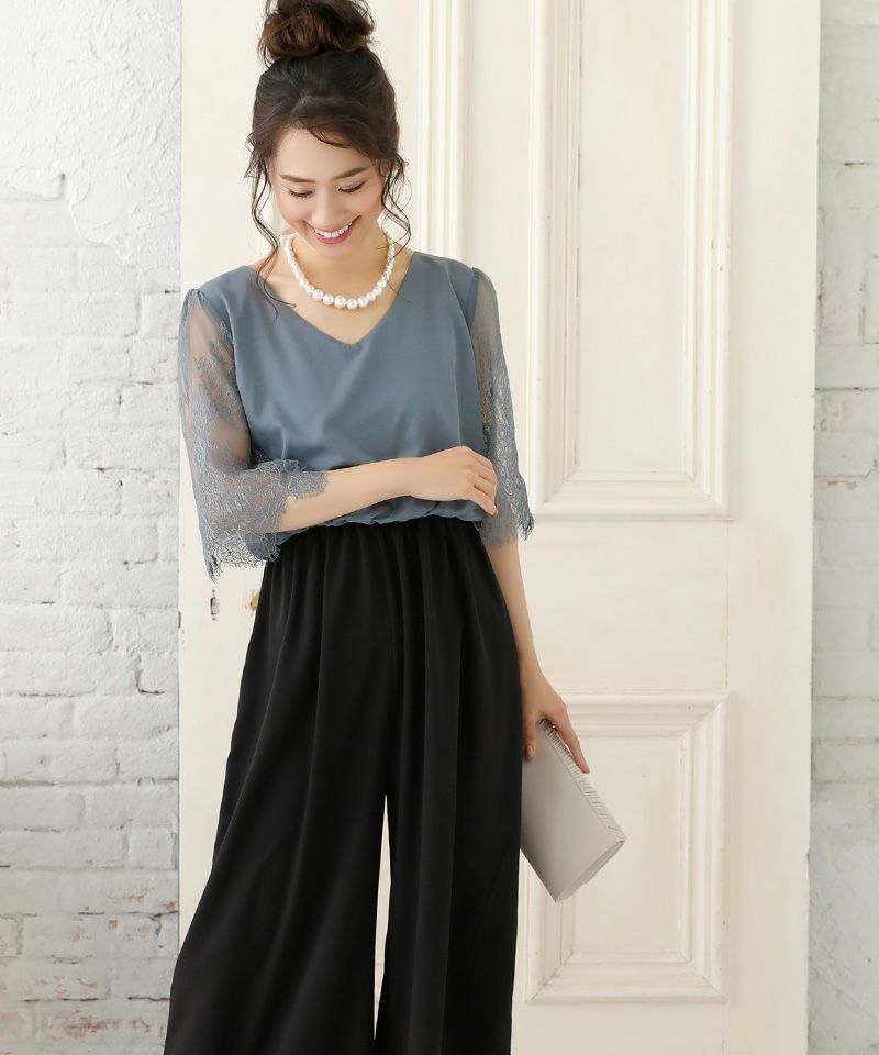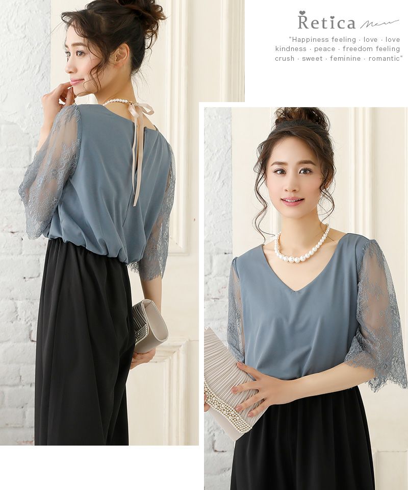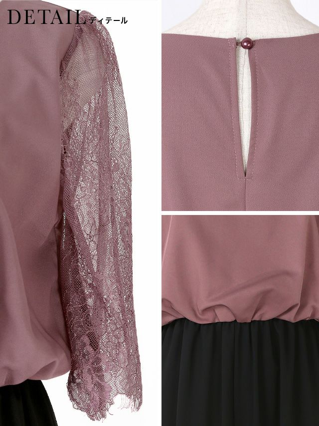 バイカラーレース袖パンツプチプラパーティードレスのメイン画像