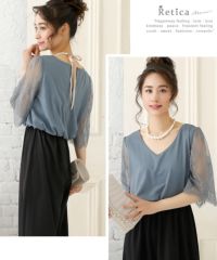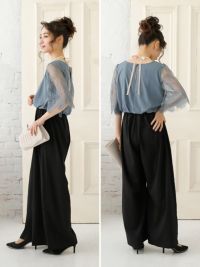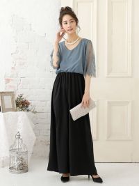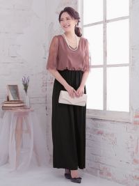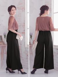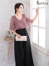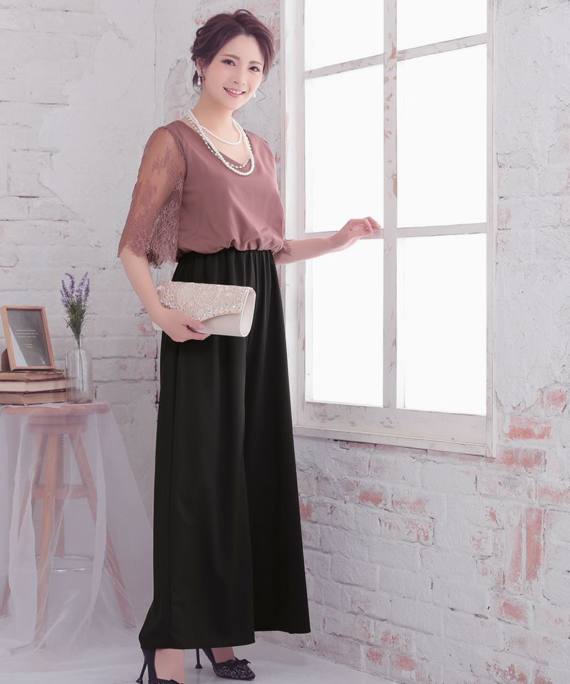 くすみカラーで周りと差をつける! [SALE] バイカラーレース袖パンツプチプラパーティードレス (Sサイズ~4Lサイズ)