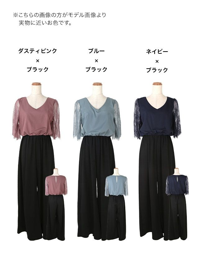 バイカラーレース袖パンツプチプラパーティードレスのカラーバリエーション