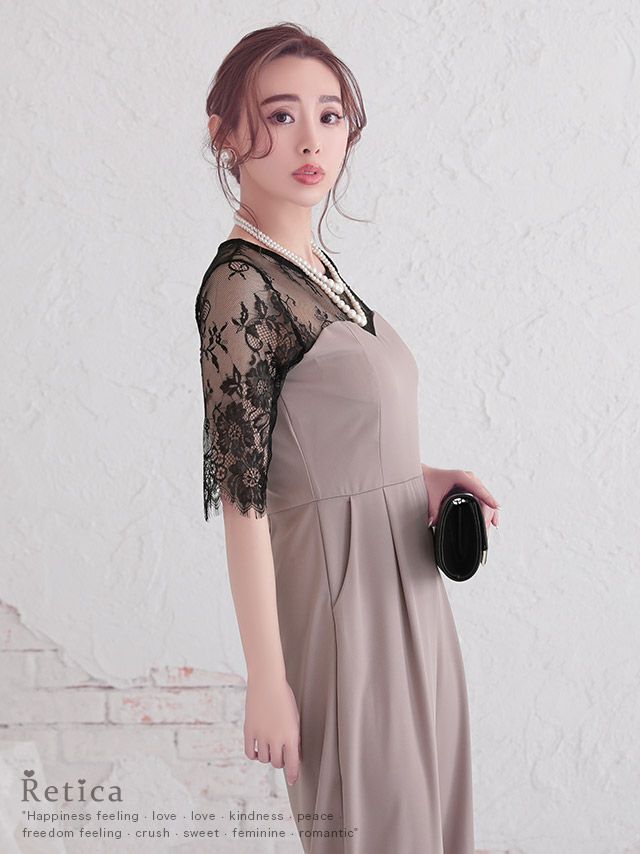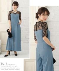 レース切替七分袖ワイドパンツパーティードレスの商品詳細1