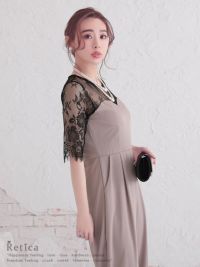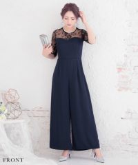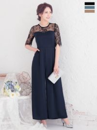 [SALE] ワンカラーレース五分袖ワイドパンツプチプラパーティードレス (Sサイズ~3Lサイズ)