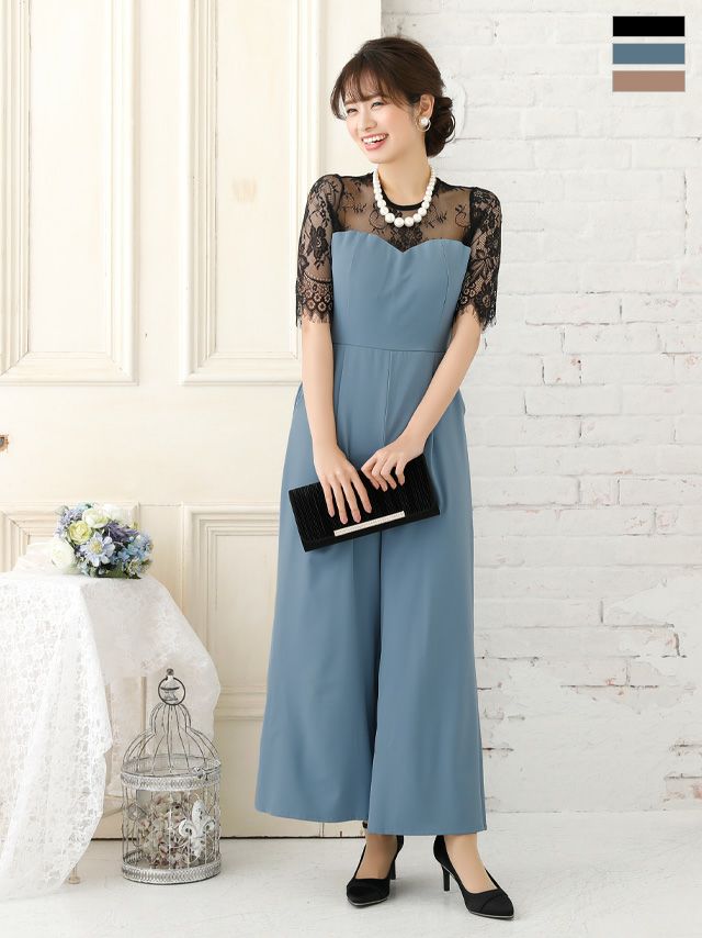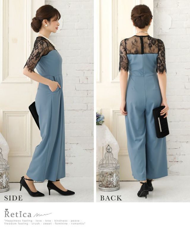 レース切替七分袖ワイドパンツパーティードレスのカラーバリエーション