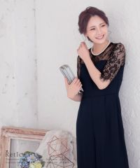 パンツデザインブラックレース切り替え袖ありパーティードレスのスペック表