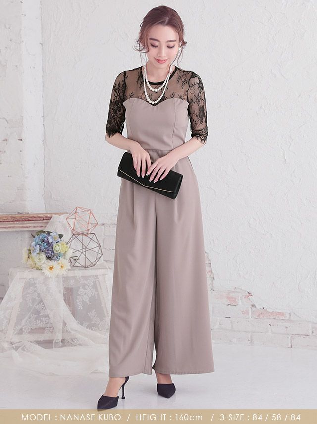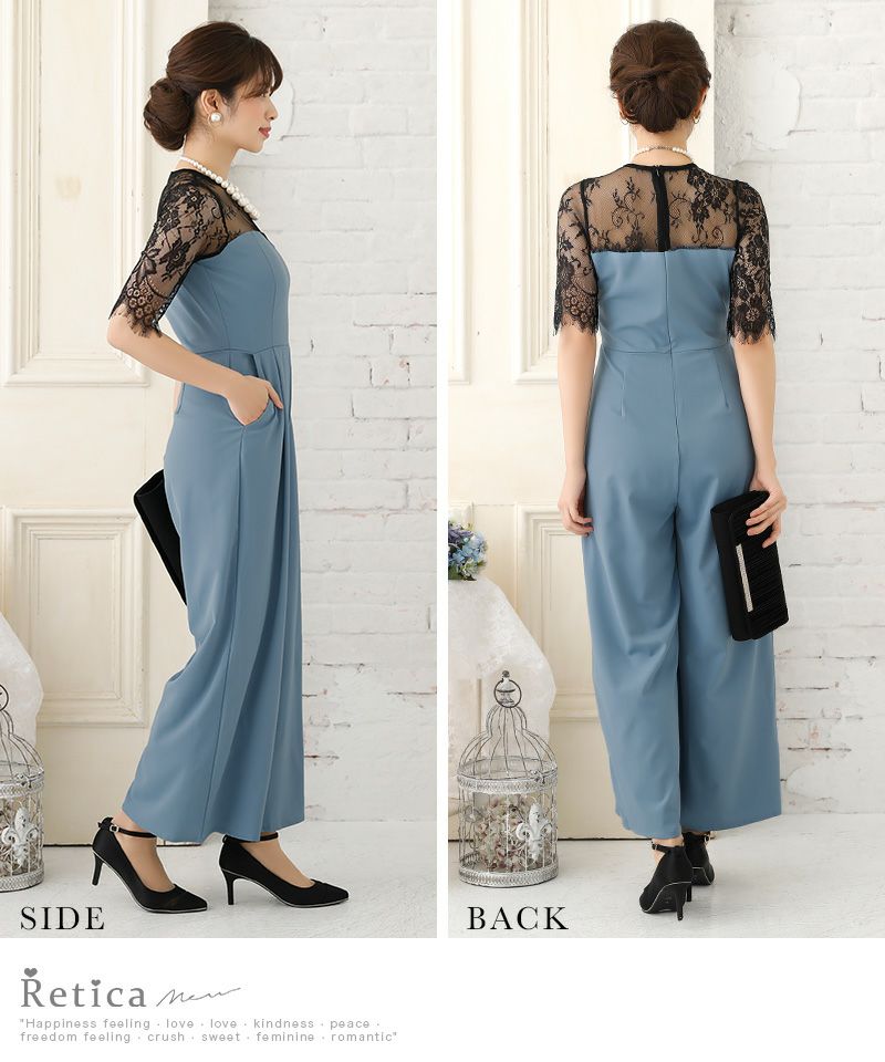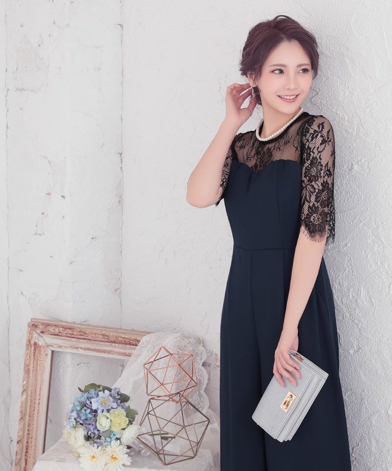 パンツデザインブラックレース切り替え袖ありパーティードレスのカラーバリエーション