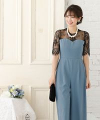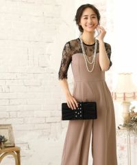 パンツデザインブラックレース切り替え袖ありパーティードレスの商品詳細1