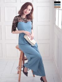 5. パンツデザインブラックレース切り替え袖ありパーティードレス (Sサイズ~XLサイズ)