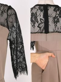 パンツデザインブラックレース切り替え袖ありパーティードレスの商品詳細2