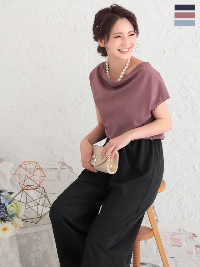 パンツスタイルハイウエスト切り替えプチプラパーティードレスのカラーバリエーション