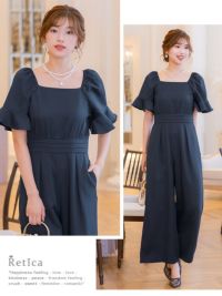 4. [SALE] スクエアネック半袖ベルスリーブウエストマークワイドパンツドレス