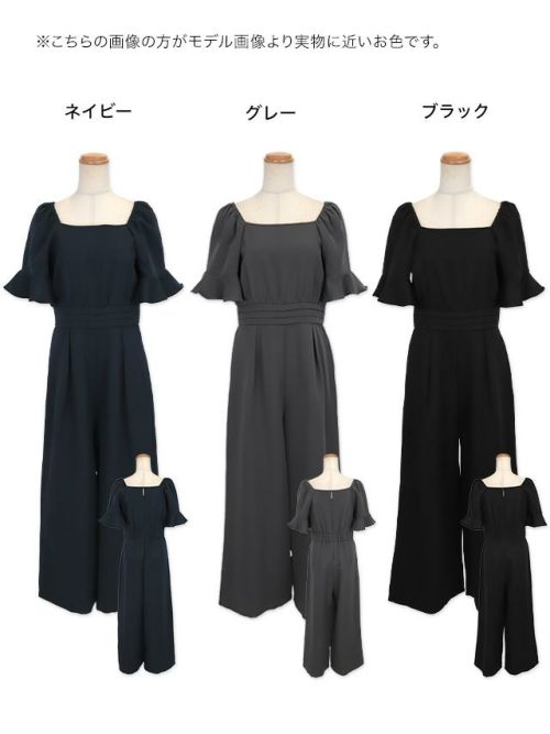 スクエアネック半袖ベルスリーブウエストマークワイドパンツドレスのカラーバリエーション