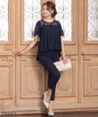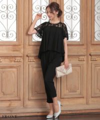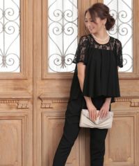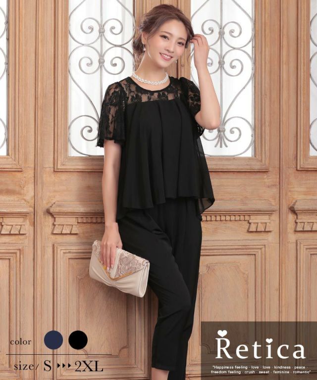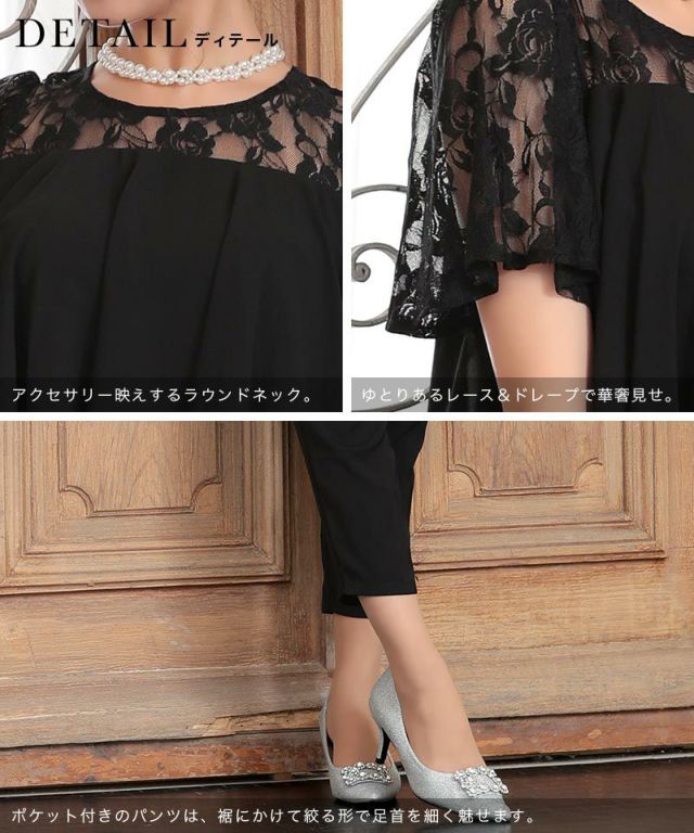 パーティードレス パンツ プチプラ セットアップドレープ×レースパンツドレス