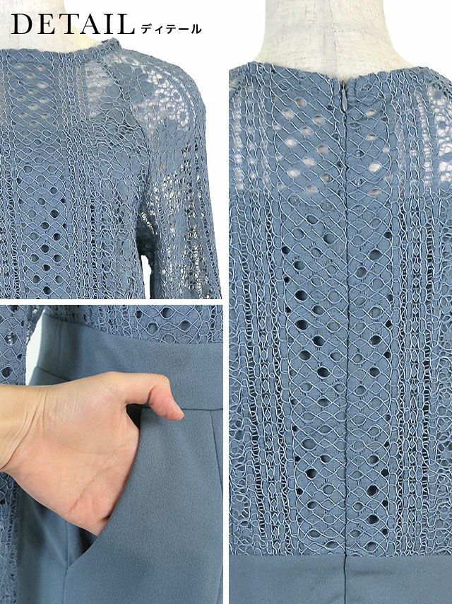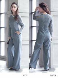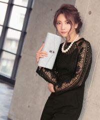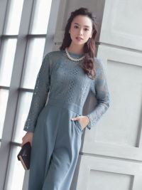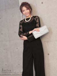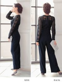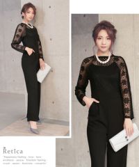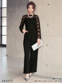 ロングスリーブハイネックレース切り替えパンツパーティードレスの商品詳細1