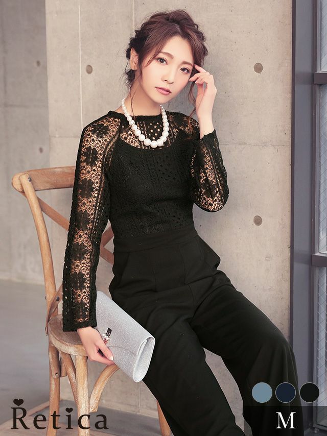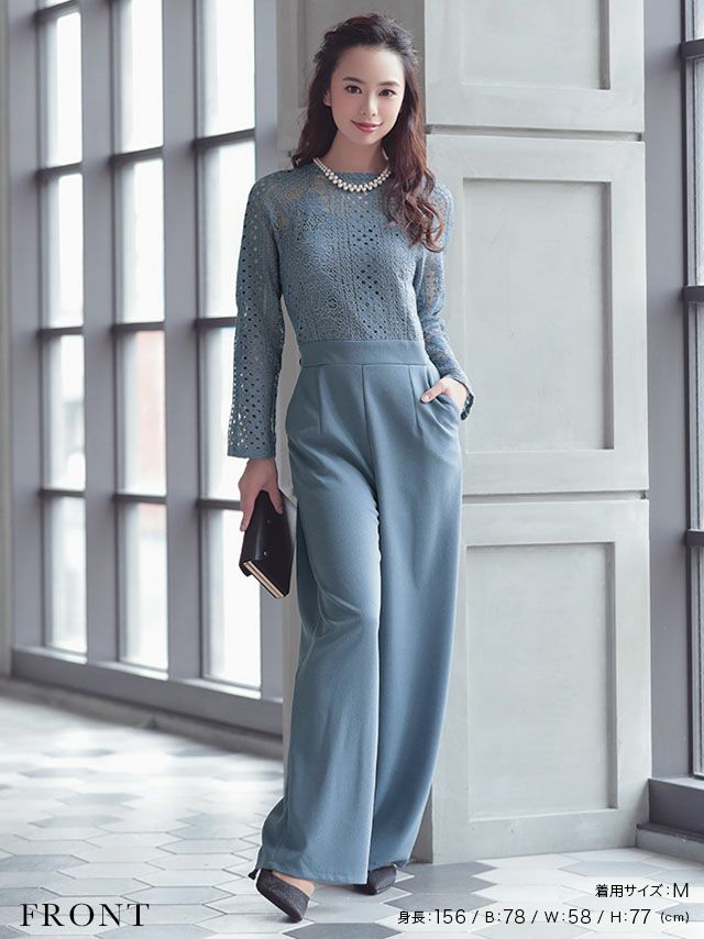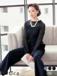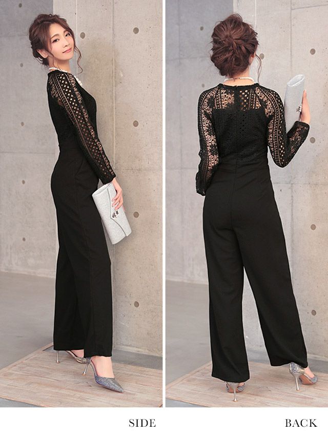 3. ロングスリーブハイネックレース切り替えパンツパーティードレス (Mサイズ)