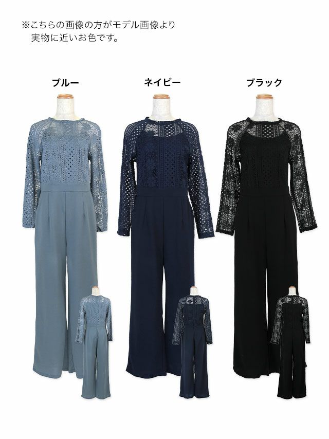 ロングスリーブハイネックレース切り替えパンツパーティードレスのカラーバリエーション