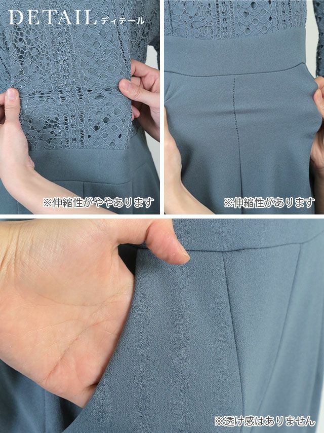 ロングスリーブハイネックレース切り替えパンツパーティードレスの商品詳細2