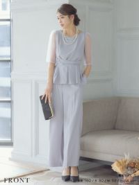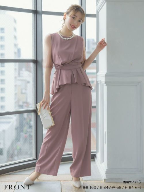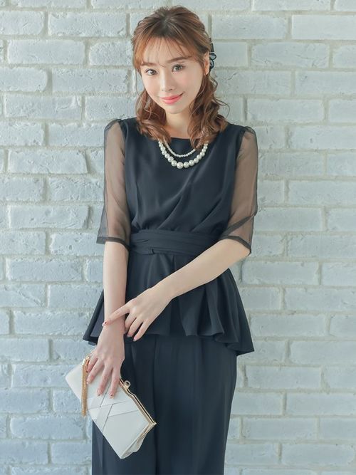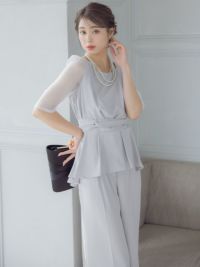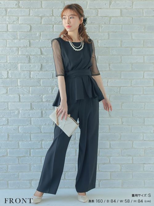 [SALE] シースルー袖ビスチェ風デザインパンツセットアップパーティードレス (Sサイズ~3Lサイズ)