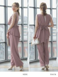 ワンカラー袖ありバックリボンセパレートパンツパーティードレスのイメージ画像3