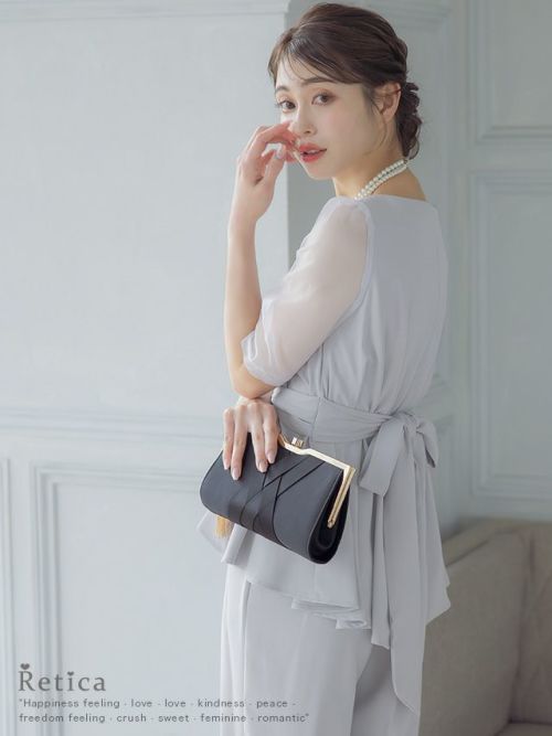 4. ワンカラー袖ありバックリボンセパレートパンツパーティードレス (Sサイズ~Lサイズ)