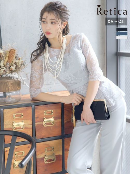 4. [SALE] ペプラムデザイン袖ありパンツスタイルオールインワンパーティードレス (XSサイズ~4Lサイズ)