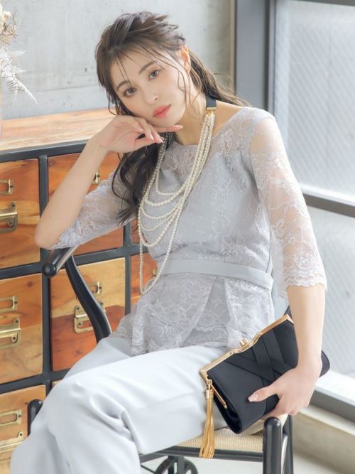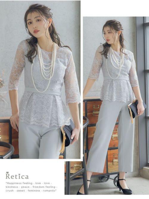 5. [SALE] ペプラムデザイン袖ありパンツスタイルオールインワンパーティードレス (XSサイズ~4Lサイズ)