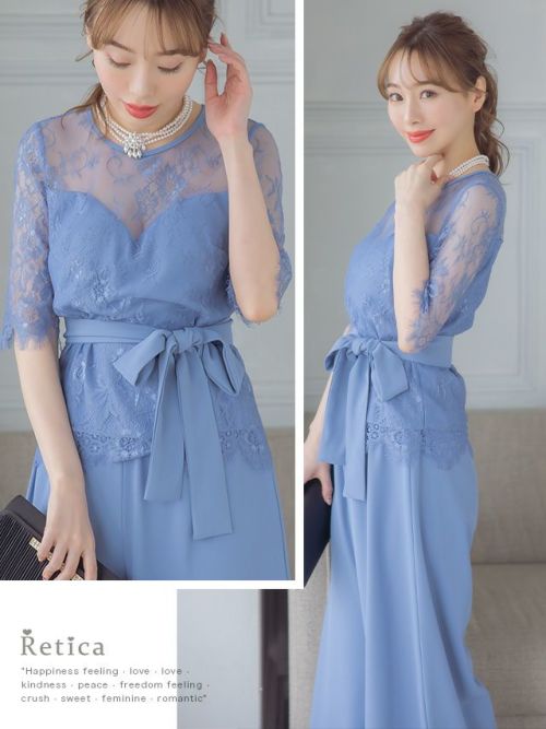 五分袖レースウエストリボンセパレートパンツパーティードレスの商品詳細1