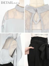 ハイネックレースケープデザインウエストリボンワイドパンツパーティードレスの商品詳細3