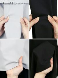 デコルテの透け感やウエストリボンマークでスタイルアップも