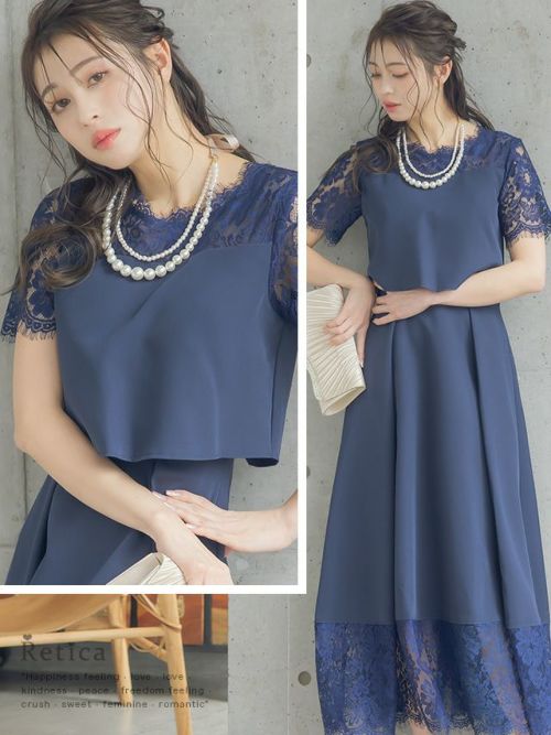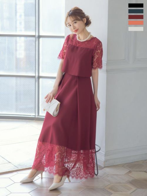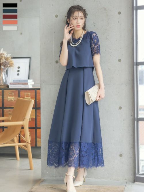 レース半袖フレアスカートロング丈ワンピースパーティードレスのカラーバリエーション