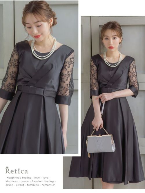 上品で可愛いひざ下丈パーティードレス♪