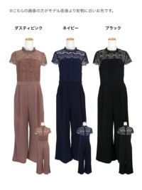 [SALE] ワンカラーレース五分袖ワイドパンツプチプラパーティードレス (Sサイズ~3Lサイズ)