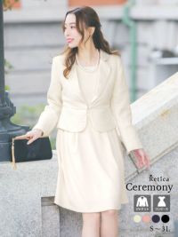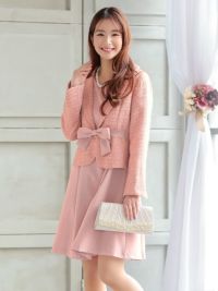 リボンが可愛い♪使いまわし抜群! [SALE] リボンデザインツイードジャケットセットワンピースセレモニースーツ (Sサイズ~XXLサイズ)
