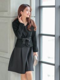 3. [SALE] リボンデザインツイードジャケットセットワンピースセレモニースーツ (Sサイズ~XXLサイズ)