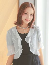 シアー素材が清潔感溢れるボレロ シアー素材フリルボレロ (Mサイズ)