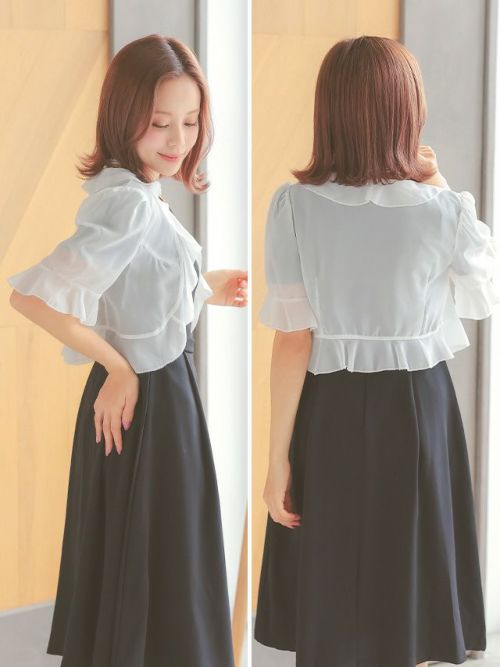透け感が女性らしさを引き立て、フリルで少し甘めな雰囲気もプラス。