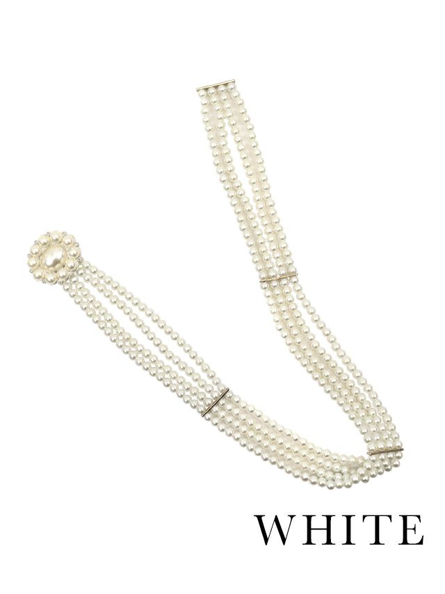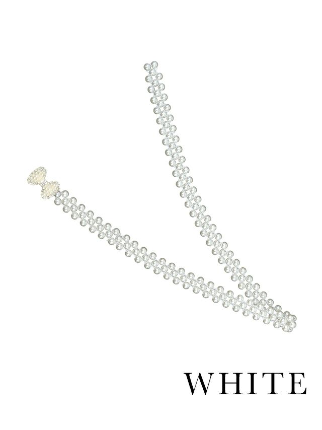 巻くだけ簡単帯アクセ♪ ホワイトパール×ゴールドパーツ飾り帯紐(ホワイト/ラベンダー/アンティークローズ/モスグリーン/ブルー/ブラック)