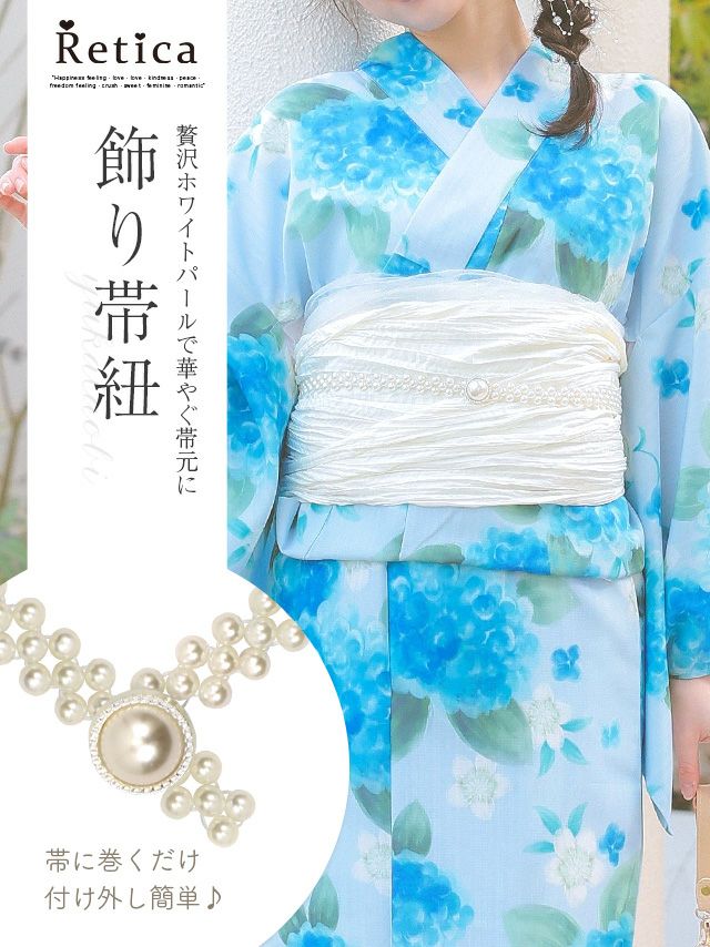 パールでときめく♪ 浴衣 飾り帯紐 ホワイトパール (ホワイト/ラベンダー/アンティークローズ/モスグリーン/ブルー/ブラック)