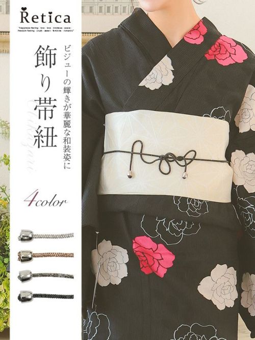 浴衣でもキラキラに♪ キラキラビジュー装飾飾り帯紐(シルバー/ローズゴールド/シルバーナイト/ブラック)