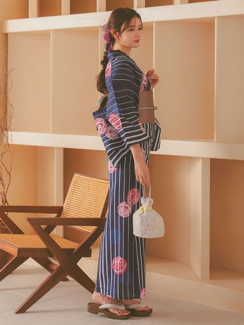 紺生地白ストライプ×鞠デザインレディース浴衣3点セットのイメージ画像5