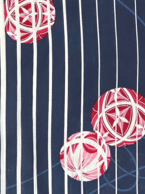 紺生地白ストライプ×鞠デザインレディース浴衣3点セットの商品詳細5
