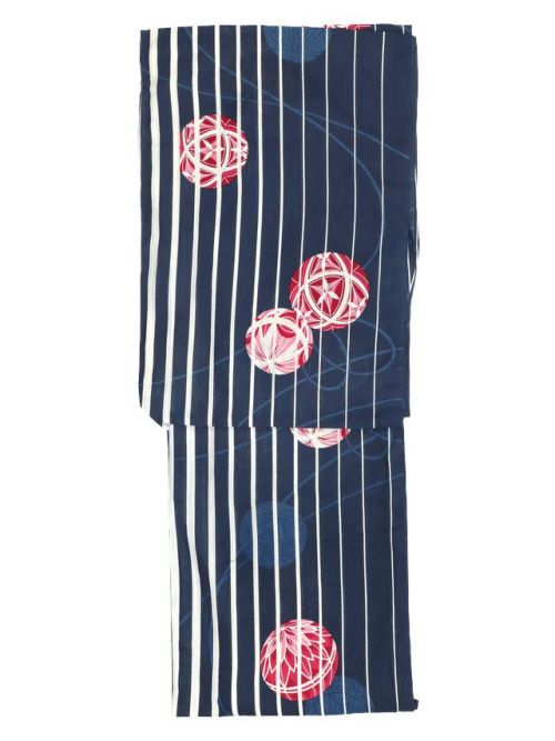 紺生地白ストライプ×鞠デザインレディース浴衣3点セットの商品詳細3
