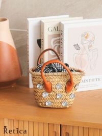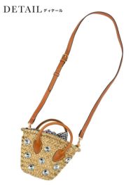 ビジュー付き白黒ギンガムチェック巾着かごバッグのスペック画像