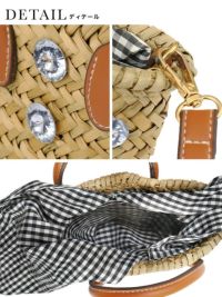 ビジュー付き白黒ギンガムチェック巾着かごバッグのメイン画像 ビジュー付き白黒ギンガムチェック巾着かごバッグのディティール画像1 ビジュー付き白黒ギンガムチェック巾着かごバッグのディティール画像2 ビジュー付き白黒ギンガムチェック巾着かごバッグのカラー詳細1
