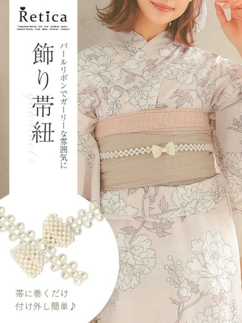 ガーリーな雰囲気に♡ 【浴衣小物】リボン型パール飾り帯紐(ホワイト)