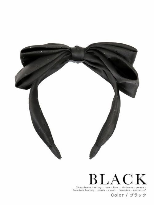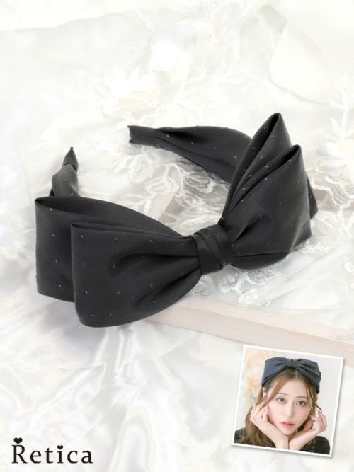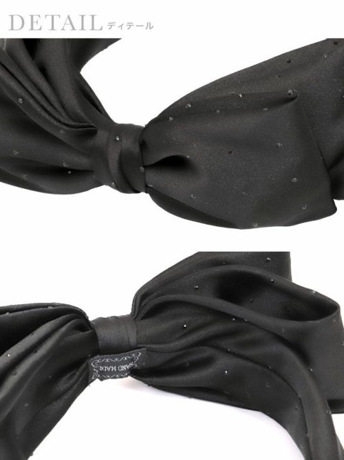 ドット模様付きビッグリボンヘアアクセサリー (ブラック)