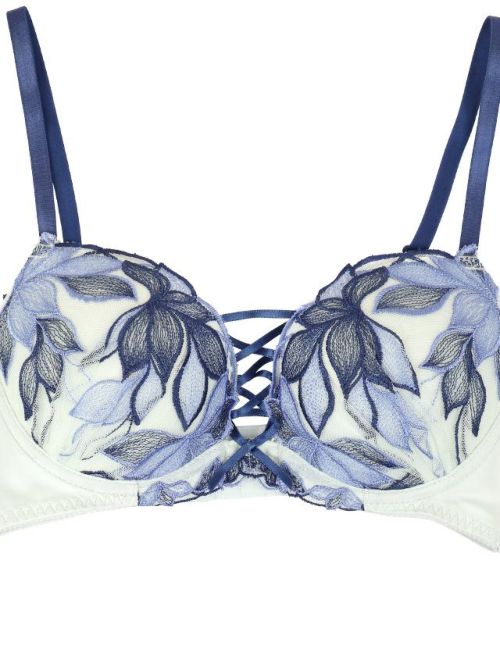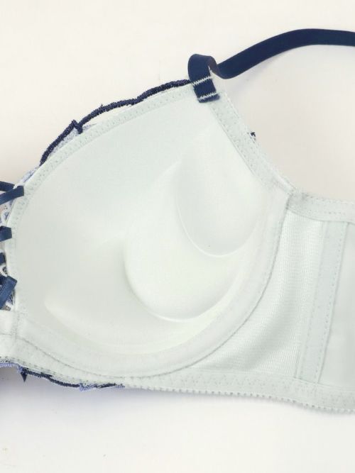 4. レースアップ花柄刺繍×サイドスリングブラジャー&ショーツセット(ブルー)(B~D/65~85)