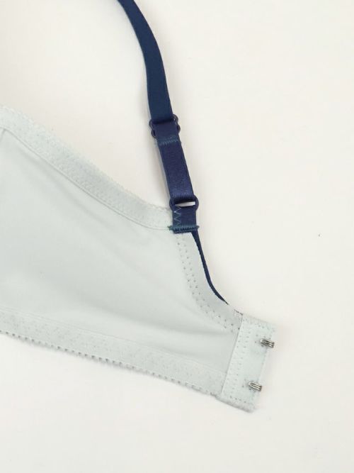 3. レースアップ花柄刺繍×サイドスリングブラジャー&ショーツセット(ブルー)(B~D/65~85)