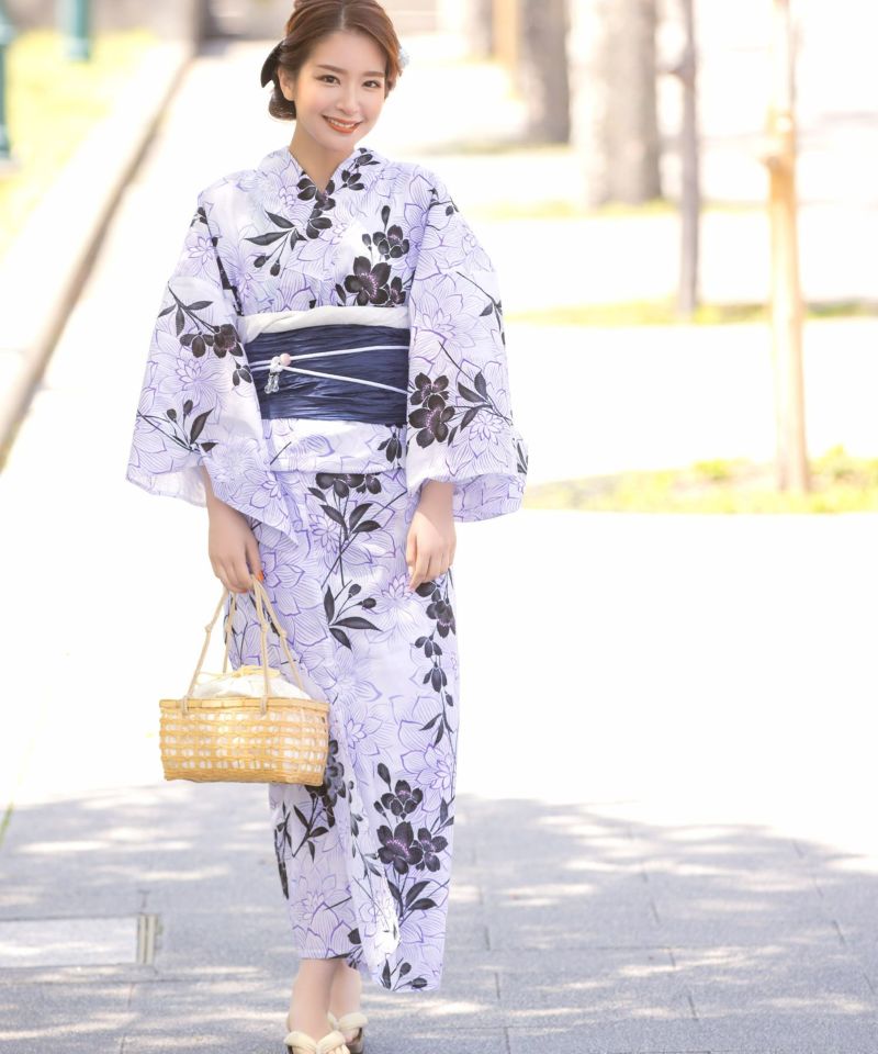 3. 白地×桜柄 3点セット浴衣(浴衣+兵児帯+下駄)