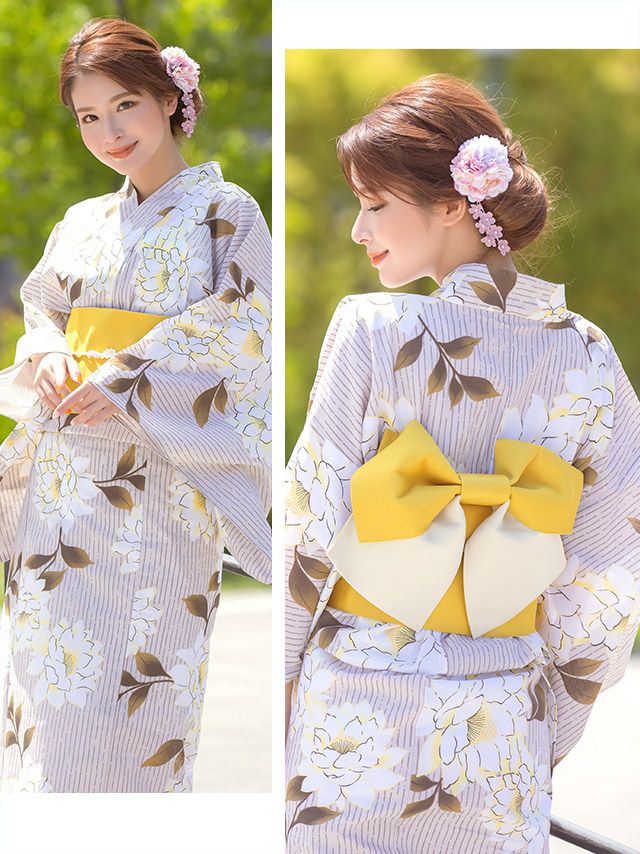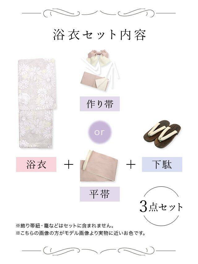 浴衣姿を華やかに彩るフラワー髪飾り 立体フラワーパーツ付き浴衣髪飾り 3点セット(ピンク/ホワイト/ダスティピンク)